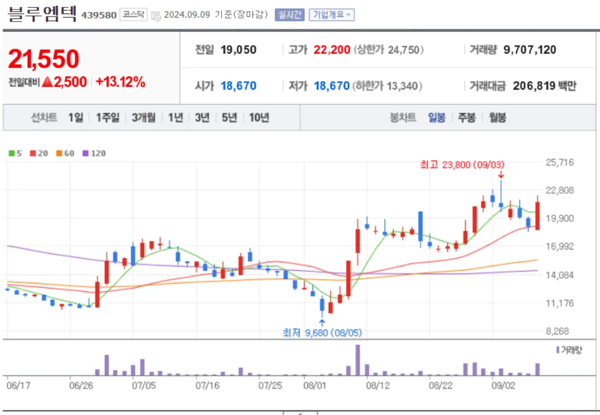 4. 블루엠텍 (바이오 헬스케어 관련주)
