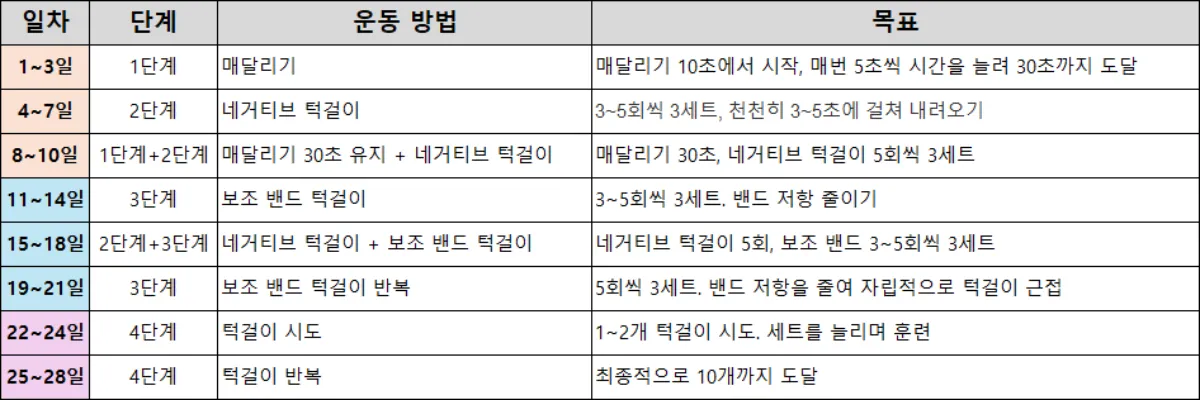 턱걸이 0개 필독! 0개부터 10개 만들기 도전 방법 (4주 턱걸이 루틴)